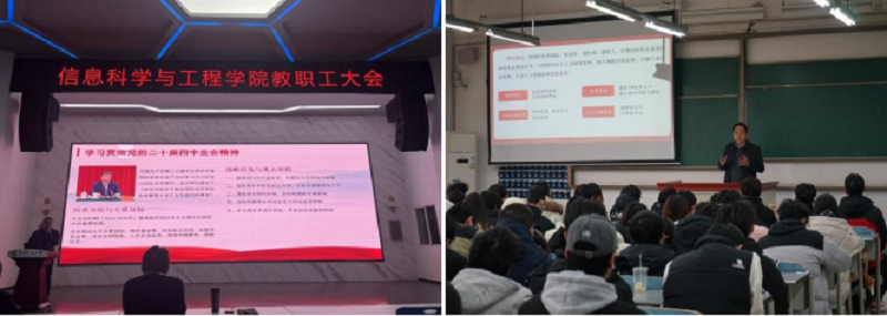 此次系列宣讲,老师们把党的二十届四中全会精神与日常学习、工作实际相结合,让理论宣讲既有思想高度,又有实践温度。师生们纷纷表示,将把学习收获转化为具体行动,以实际作为践行党的二十届四中全会精神,为学校“双一流”建设贡献新的信息力量。