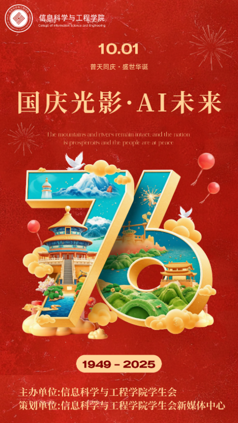 为庆祝中华人民共和国成立76周年,进一步激发学子们的爱国热情,同时将信息学科特色与人文情怀深度融合,重庆交通大学信息科学与工程学院新媒体中心策划组织的“国庆光影・AI未来”线上摄影活动已圆满结束。活动以“镜头捕光、AI赋能”为核心,引导学子用独特视角记录校园里的国庆印记,用科技力量为爱国情怀注入创新表达。