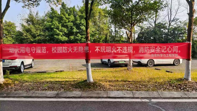 为筑牢冬日校园安全防线,强化师生消防安全意识,近日,重庆交通大学信息科学与工程学院在德园宿舍区开展消防安全宣传活动,以“易拉宝展示+横幅宣传”的组合形式传递实用消防知识。