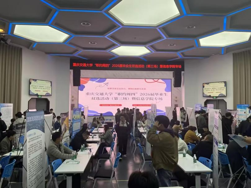 2025年11月27日,重庆交通大学信息科学与工程学院在南岸校区第一教学楼大数据中心举办信息学院26届毕业生专场招聘会,活动汇聚跨行业优质企业,为毕业生搭建高效多元的就业平台。信息科学与工程学院党委书记王辉老师,院长杨建喜老师,正处级组织员、纪委书记郑廷友老师,党委副书记蒋攀老师,学工办漆振羽老师及辅导员彭娅、王延鹏、胡小容老师参与此次活动,主动积极与企业沟通交流并帮助推荐学生面试。