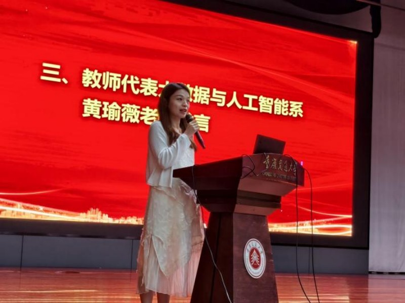 随后,教师代表、大数据与人工智能系黄瑜薇老师分享学习心得,建议新生打好基础、主动探索、善用资源、劳逸结合,鼓励大家保持好奇心与学习热情,勇敢面对挑战,树立责任感与使命感。