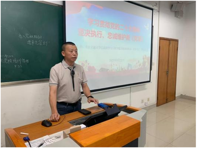 9月22日、23日,信息学院纪委书记郑廷友老师围绕“学习贯彻党的二十大精神,坚决执行、忠诚维护新党章”开展授课。他首先对党的二十大概况进行系统解读,从大会召开的时代背景切入,详细阐释大会确立的中心任务,帮助学员全面把握会议精神实质。郑廷友老师特别强调,“不忘初心,牢记使命”是中国共产党人的精神支柱与政治灵魂,嘱咐全体学员务必将这一根本要求内化于心、外化于行。