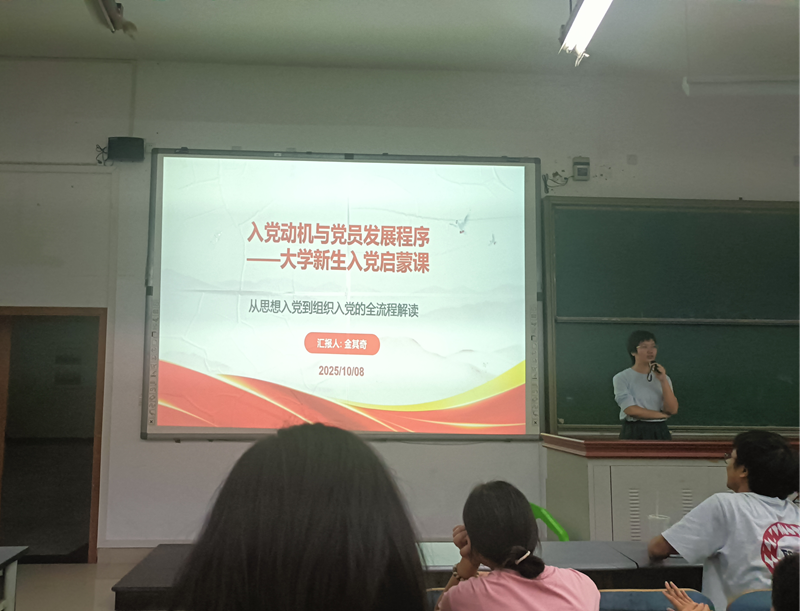2025年10月8日,在科学城校区A01337、A01338教室,信息学院2025级辅导员陶龙、金其奇面向全体新生,围绕"端正入党动机、规范入党程序"主题展开专题教育,为新生扣好政治生涯"第一粒扣子"。
