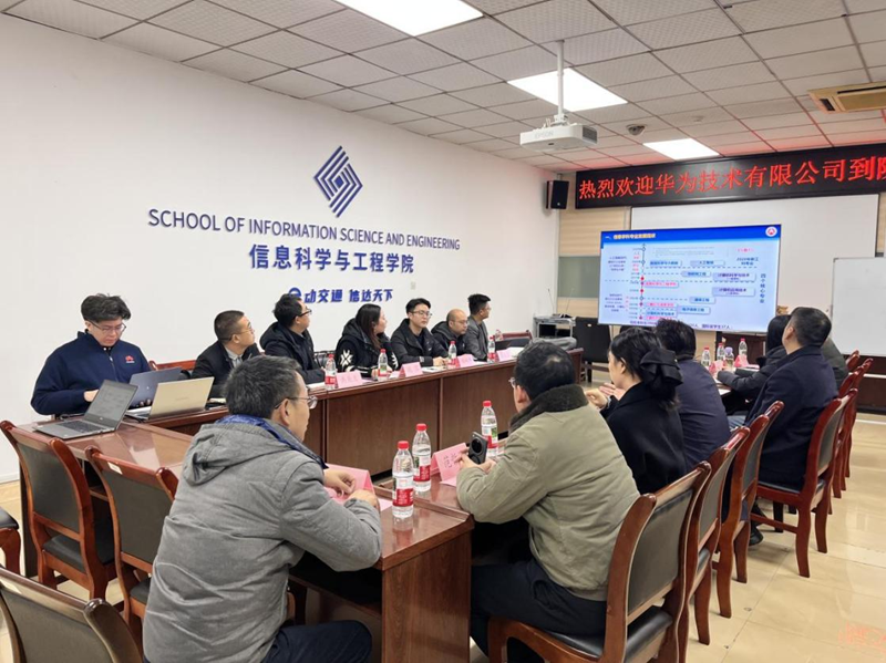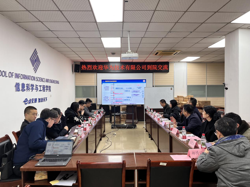 2025 年 11 月 18 日下午 3:30,华为技术有限公司一行专程到访重庆交通大学南岸校区,与信息科学与工程学院在语音楼 910 会议室举行合作交流座谈会。此次到访既是对 11 月初宫辉书记一行赴华为深圳、东莞基地考察交流的积极回应,更是双方在前期签署合作框架协议基础上,推动合作内容落地、细化合作路径的关键举措。华为技术有限公司重庆教育行业商业总监魏溶、人才培养经理段军伟等相关领导与技术人员,信息学院党委书记王辉、院长杨建喜、副院长张廷萍及教学办、各系部、实验教学中心负责人共同参会,座谈会由张廷萍副院长主持。