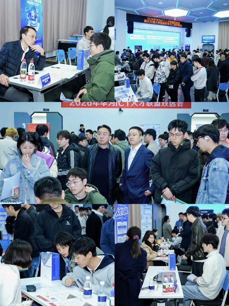 在随后进行的2026年华为ICT人才联盟双选会中,来自华为生态的17家企业齐聚第一教学楼大数据中心,带来大量ICT相关就业实习岗位,500余名来自校内外相关专业学生有序进场投递简历、现场面试,校企领导和毕业班老师也到双选会现场关心推荐求职学生,了解招聘求职情况。