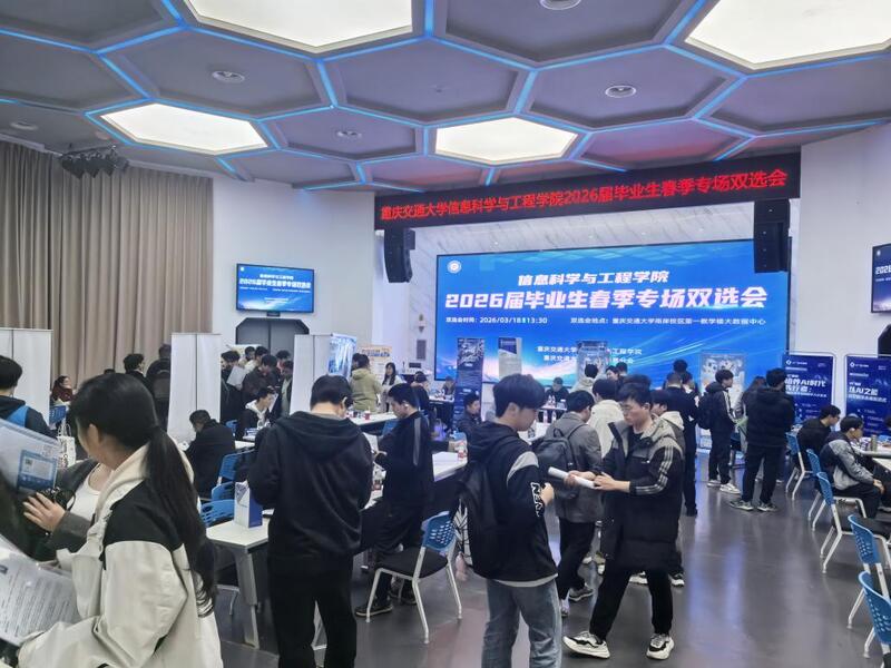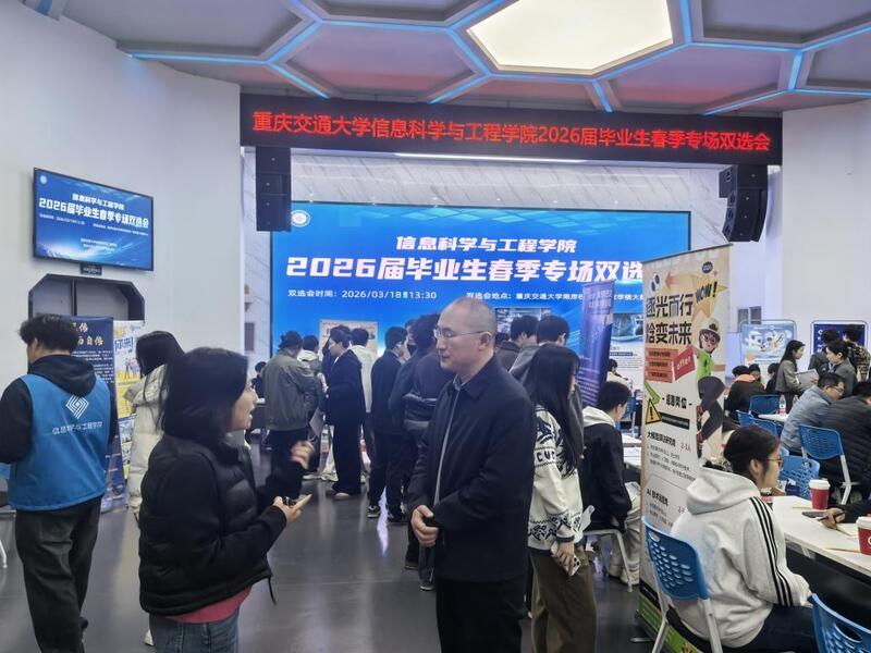 3月18日下午,重庆交通大学信息科学与工程学院2026届毕业生春季专场双选会在南岸校区第一教学楼大数据中心和10301教室同步成功举办。本次双选会旨在抢抓春季就业黄金期,搭建校企精准对接平台,助力学院毕业生高质量就业。