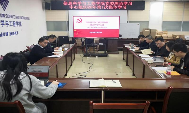 为深入学习贯彻习近平总书记关于树立和践行正确政绩观的重要论述,全面落实上级有关“开展树立和践行正确政绩观学习教育”活动要求,2026年3月25日上午,信息科学与工程学院党委在南岸校区60910会议室举行理论学习中心组第1次集体学习。学院党委书记王辉主持学习,学院全体党委委员参加学习。