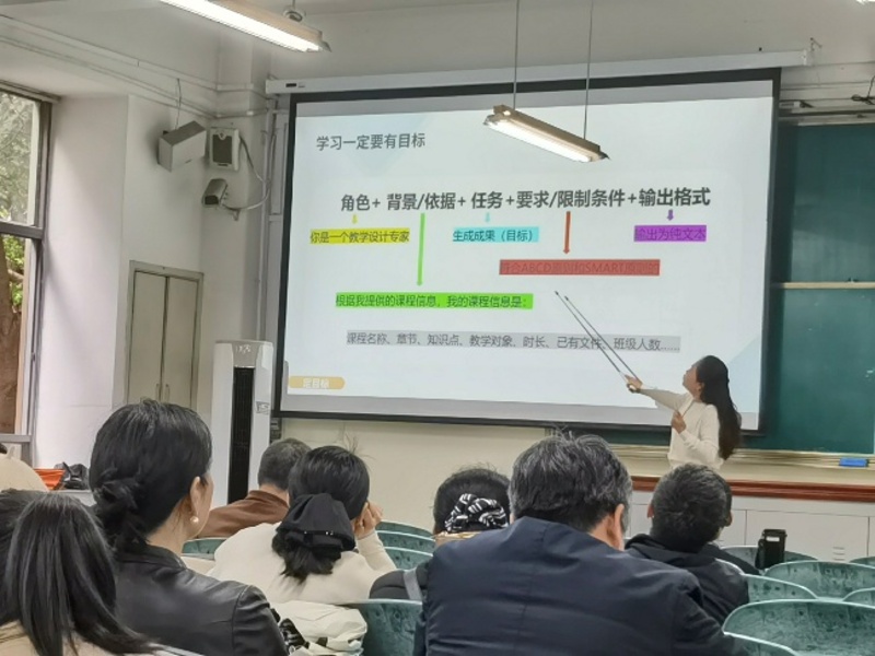 本次培训会围绕三大核心内容展开:AI辅助现有PPT换新、AI辅助文字可视化和AI辅助教学大纲修订。通过“定目标—验目标—美图片”三步法,可快速更新PPT内容,提升课堂视觉效果;掌握文字直接生成图片的技巧,使教学内容更生动;基于OBE理念,结合专业课程体系和产业需求,修订出高质量教学大纲。之后,余老师以“实用+针对性”为核心,通过案例实操演练实现即学即用,借助AI工具检验目标达成情况,动态调整教学策略。同时她还提供了免费或低成本的教师友好型AI工具清单,以减轻教师重复劳动,释放创新潜力。