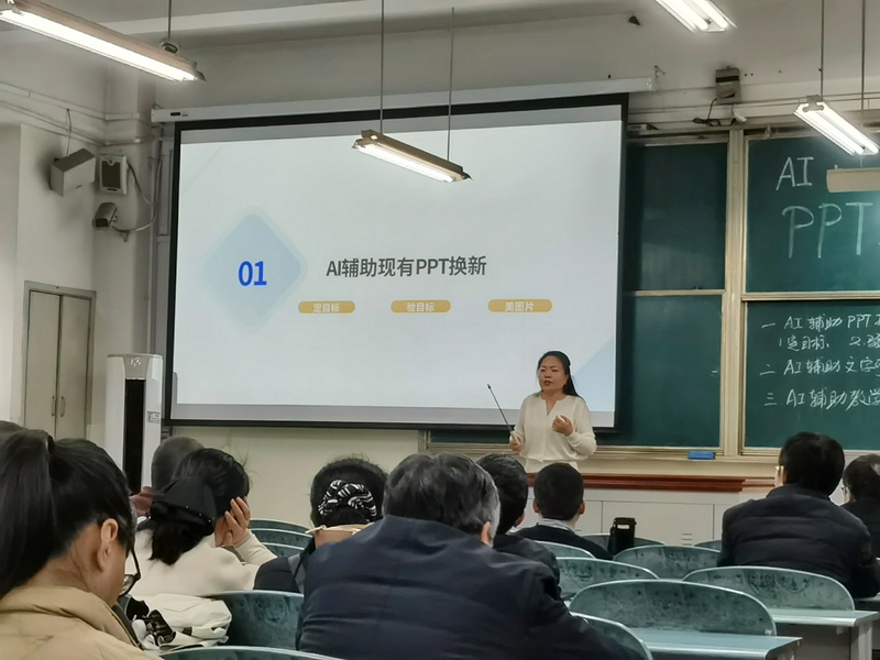 为助力一线教师快速适应AI时代的教学需求,2026年春季学期,我院邀请机电学院教授余腾伟老师在二教楼举办“AI+PPT教学大纲速成班”培训会,余老师为我院教师们提供了一场别开生面的AI求生指南。